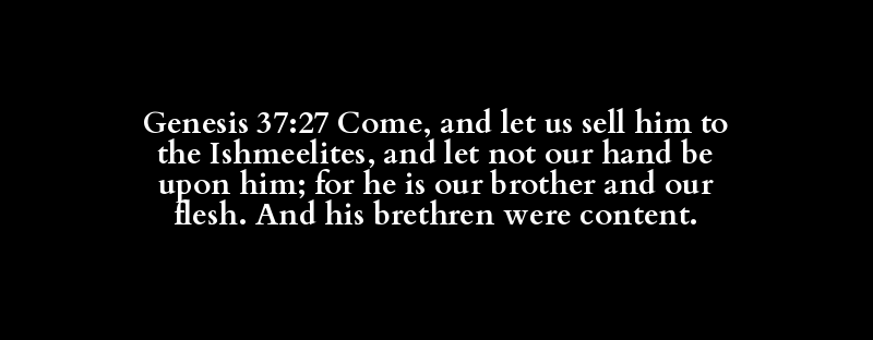 Genesis 37:27 Come, and let us sell him to the Ishmeelites, and let not our hand be upon him; for he is our brother and our flesh. And his brethren were content.