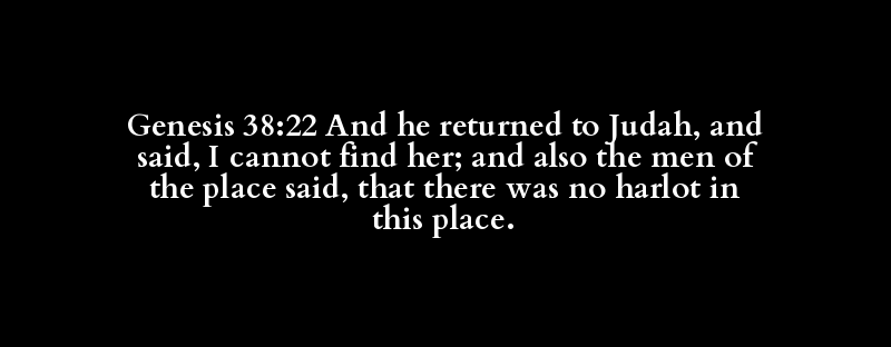 Genesis 38:22 And he returned to Judah, and said, I cannot find her; and also the men of the place said, that there was no harlot in this place.