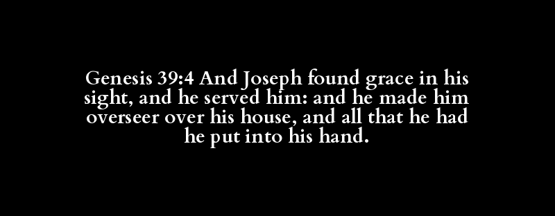 Genesis 39:4 And Joseph found grace in his sight, and he served him: and he made him overseer over his house, and all that he had he put into his hand.