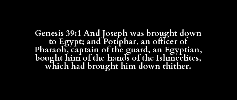 Genesis 39:1 And Joseph was brought down to Egypt; and Potiphar, an officer of Pharaoh, captain of the guard, an Egyptian, bought him of the hands of the Ishmeelites, which had brought him down thither.