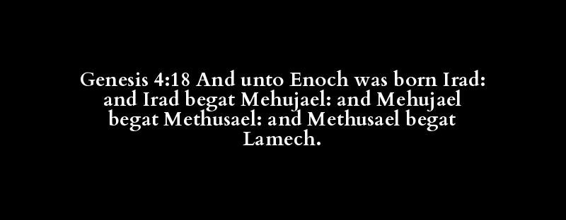 Genesis 4:18 And unto Enoch was born Irad: and Irad begat Mehujael: and Mehujael begat Methusael: and Methusael begat Lamech.