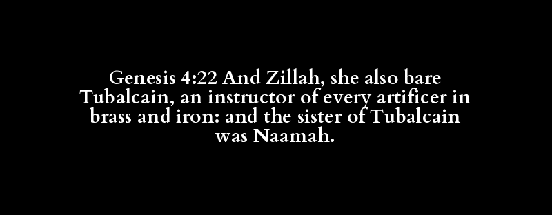 Genesis 4:22 And Zillah, she also bare Tubalcain, an instructor of every artificer in brass and iron: and the sister of Tubalcain was Naamah.