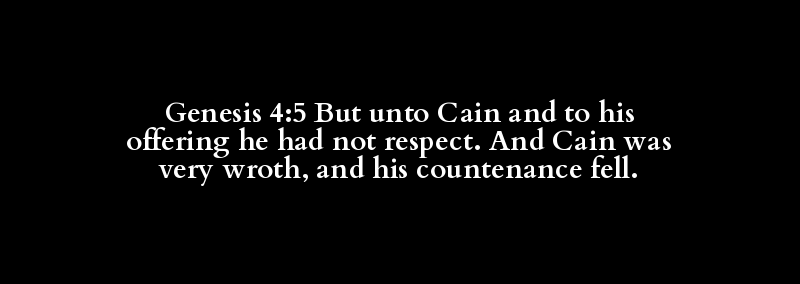 Genesis 4:5 But unto Cain and to his offering he had not respect. And Cain was very wroth, and his countenance fell.