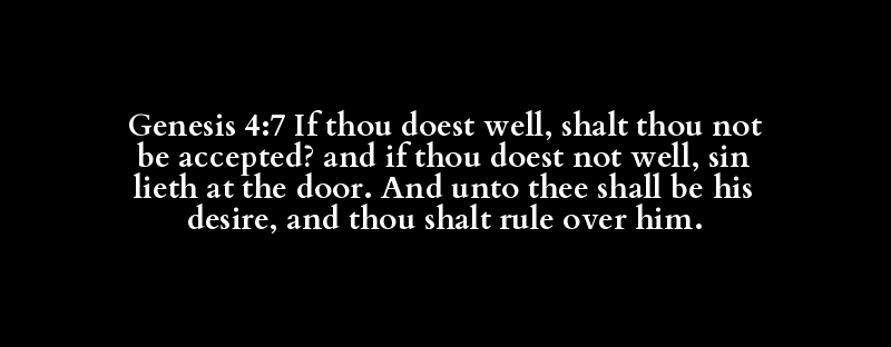 Genesis 4:7 If thou doest well, shalt thou not be accepted? and if thou doest not well, sin lieth at the door. And unto thee shall be his desire, and thou shalt rule over him.