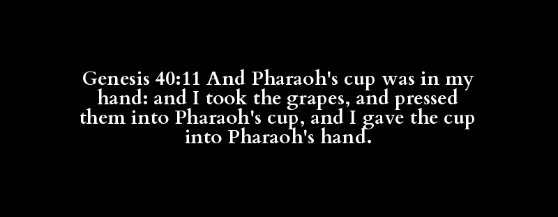 Genesis 40:11 And Pharaoh's cup was in my hand: and I took the grapes, and pressed them into Pharaoh's cup, and I gave the cup into Pharaoh's hand.