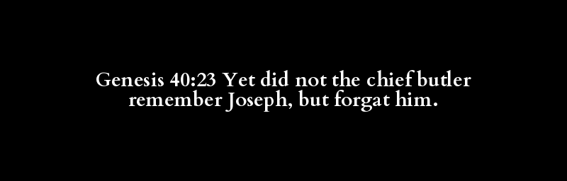 Genesis 40:23 Yet did not the chief butler remember Joseph, but forgat him.