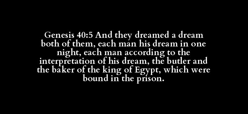 Genesis 40:5 And they dreamed a dream both of them, each man his dream in one night, each man according to the interpretation of his dream, the butler and the baker of the king of Egypt, which were bound in the prison.