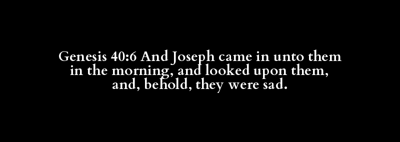 Genesis 40:6 And Joseph came in unto them in the morning, and looked upon them, and, behold, they were sad.