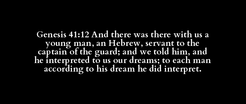 Genesis 41:12 And there was there with us a young man, an Hebrew, servant to the captain of the guard; and we told him, and he interpreted to us our dreams; to each man according to his dream he did interpret.