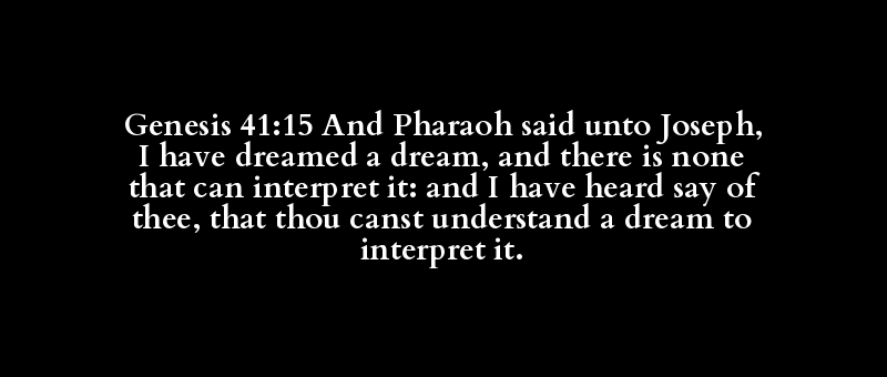 Genesis 41:15 And Pharaoh said unto Joseph, I have dreamed a dream, and there is none that can interpret it: and I have heard say of thee, that thou canst understand a dream to interpret it.