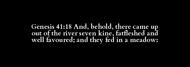 Genesis 41:18 And, behold, there came up out of the river seven kine, fatfleshed and well favoured; and they fed in a meadow: