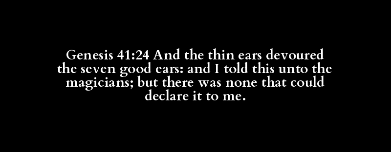 Genesis 41:24 And the thin ears devoured the seven good ears: and I told this unto the magicians; but there was none that could declare it to me.