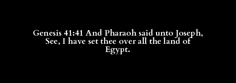 Genesis 41:41 And Pharaoh said unto Joseph, See, I have set thee over all the land of Egypt.