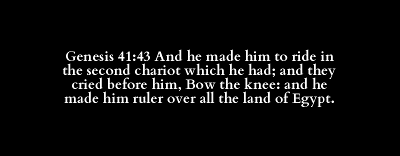 Genesis 41:43 And he made him to ride in the second chariot which he had; and they cried before him, Bow the knee: and he made him ruler over all the land of Egypt.