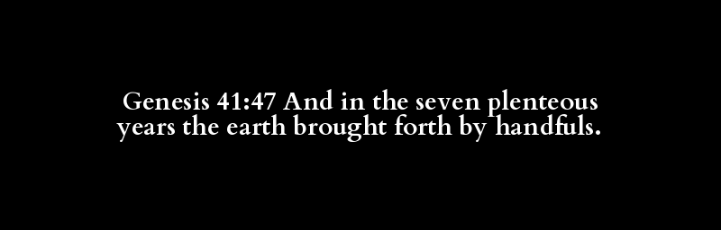 Genesis 41:47 And in the seven plenteous years the earth brought forth by handfuls.