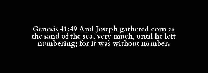 Genesis 41:49 And Joseph gathered corn as the sand of the sea, very much, until he left numbering; for it was without number.