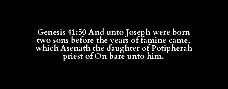 Genesis 41:50 And unto Joseph were born two sons before the years of famine came, which Asenath the daughter of Potipherah priest of On bare unto him.