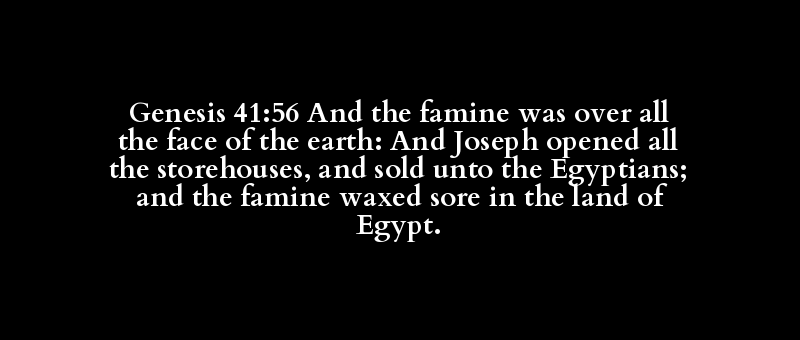 Genesis 41:56 And the famine was over all the face of the earth: And Joseph opened all the storehouses, and sold unto the Egyptians; and the famine waxed sore in the land of Egypt.