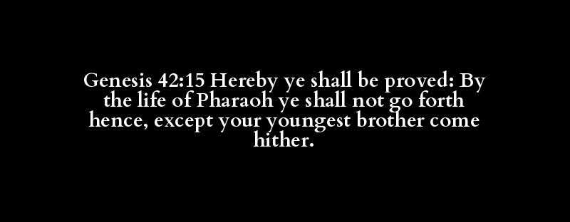 Genesis 42:15 Hereby ye shall be proved: By the life of Pharaoh ye shall not go forth hence, except your youngest brother come hither.