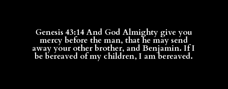Genesis 43:14 And God Almighty give you mercy before the man, that he may send away your other brother, and Benjamin. If I be bereaved of my children, I am bereaved.