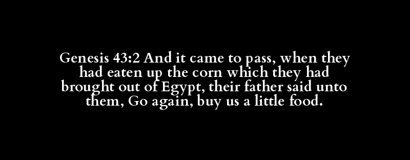 Genesis 43:2 And it came to pass, when they had eaten up the corn which they had brought out of Egypt, their father said unto them, Go again, buy us a little food.