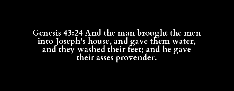 Genesis 43:24 And the man brought the men into Joseph's house, and gave them water, and they washed their feet; and he gave their asses provender.