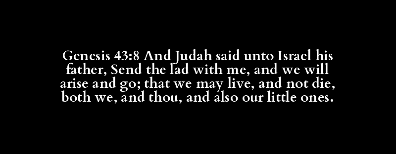 Genesis 43:8 And Judah said unto Israel his father, Send the lad with me, and we will arise and go; that we may live, and not die, both we, and thou, and also our little ones.