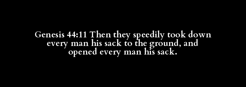 Genesis 44:11 Then they speedily took down every man his sack to the ground, and opened every man his sack.