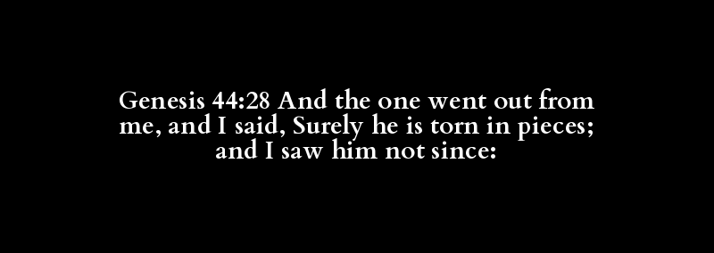 Genesis 44:28 And the one went out from me, and I said, Surely he is torn in pieces; and I saw him not since: