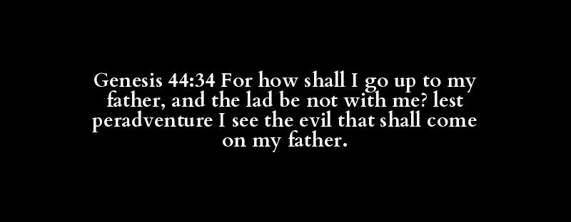 Genesis 44:34 For how shall I go up to my father, and the lad be not with me? lest peradventure I see the evil that shall come on my father.