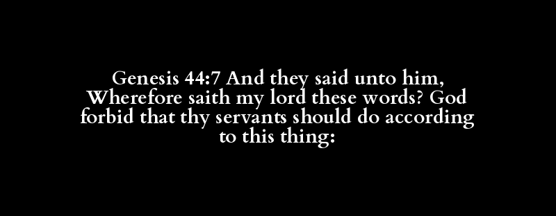 Genesis 44:7 And they said unto him, Wherefore saith my lord these words? God forbid that thy servants should do according to this thing: