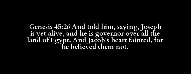 Genesis 45:26 And told him, saying, Joseph is yet alive, and he is governor over all the land of Egypt. And Jacob's heart fainted, for he believed them not.