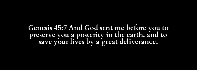 Genesis 45:7 And God sent me before you to preserve you a posterity in the earth, and to save your lives by a great deliverance.
