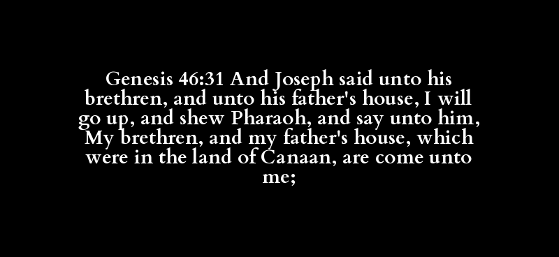 Genesis 46:31 And Joseph said unto his brethren, and unto his father's house, I will go up, and shew Pharaoh, and say unto him, My brethren, and my father's house, which were in the land of Canaan, are come unto me;