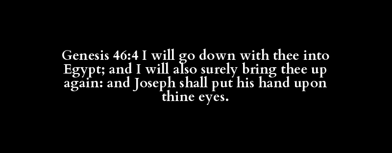 Genesis 46:4 I will go down with thee into Egypt; and I will also surely bring thee up again: and Joseph shall put his hand upon thine eyes.