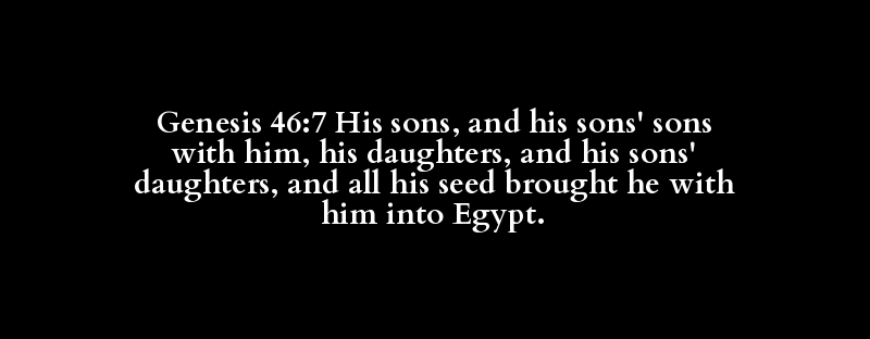 Genesis 46:7 His sons, and his sons' sons with him, his daughters, and his sons' daughters, and all his seed brought he with him into Egypt.