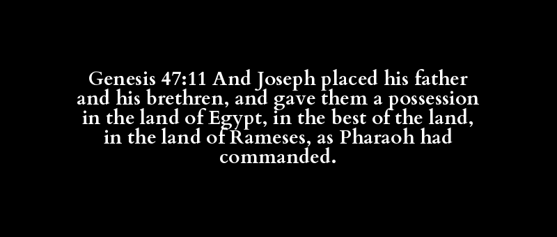Genesis 47:11 And Joseph placed his father and his brethren, and gave them a possession in the land of Egypt, in the best of the land, in the land of Rameses, as Pharaoh had commanded.