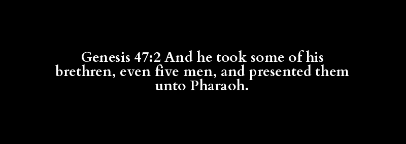Genesis 47:2 And he took some of his brethren, even five men, and presented them unto Pharaoh.