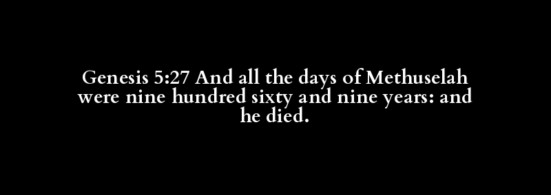 Genesis 5:27 And all the days of Methuselah were nine hundred sixty and nine years: and he died.