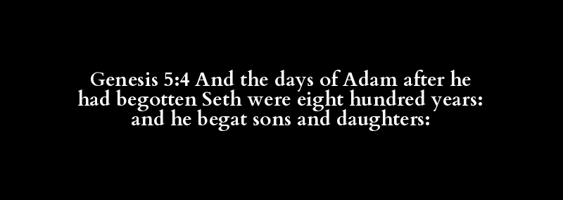 Genesis 5:4 And the days of Adam after he had begotten Seth were eight hundred years: and he begat sons and daughters: