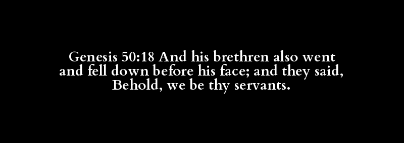 Genesis 50:18 And his brethren also went and fell down before his face; and they said, Behold, we be thy servants.