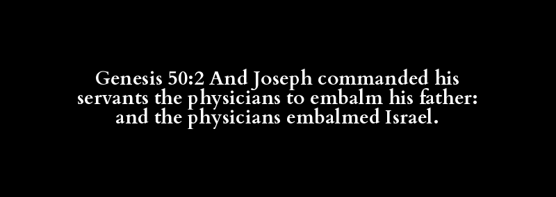Genesis 50:2 And Joseph commanded his servants the physicians to embalm his father: and the physicians embalmed Israel.
