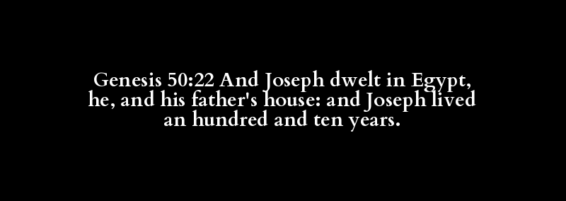 Genesis 50:22 And Joseph dwelt in Egypt, he, and his father's house: and Joseph lived an hundred and ten years.