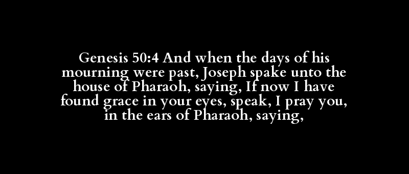Genesis 50:4 And when the days of his mourning were past, Joseph spake unto the house of Pharaoh, saying, If now I have found grace in your eyes, speak, I pray you, in the ears of Pharaoh, saying,