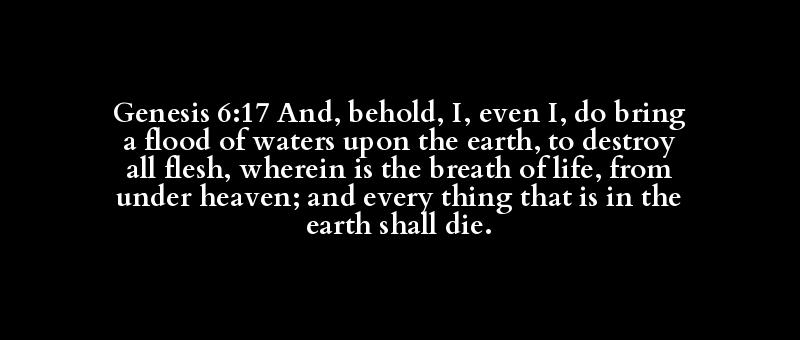 Genesis 6:17 And, behold, I, even I, do bring a flood of waters upon the earth, to destroy all flesh, wherein is the breath of life, from under heaven; and every thing that is in the earth shall die.