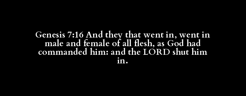 Genesis 7:16 And they that went in, went in male and female of all flesh, as God had commanded him: and the LORD shut him in.
