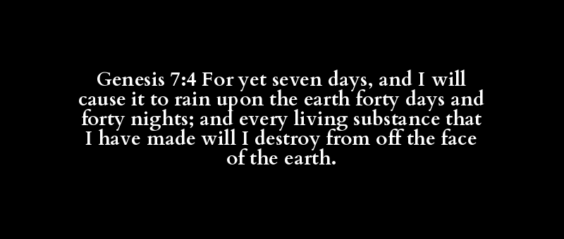 Genesis 7:4 For yet seven days, and I will cause it to rain upon the earth forty days and forty nights; and every living substance that I have made will I destroy from off the face of the earth.
