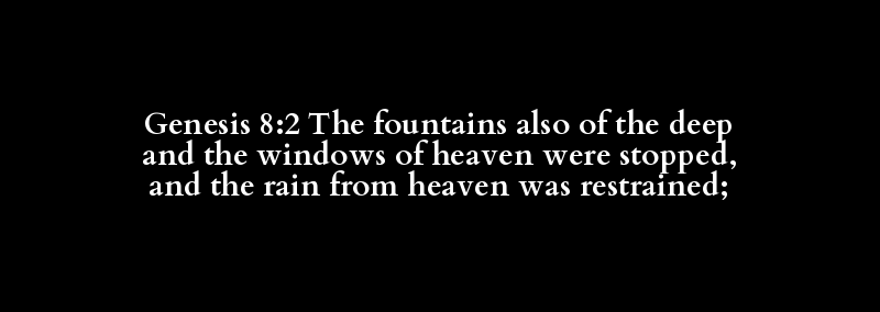 Genesis 8:2 The fountains also of the deep and the windows of heaven were stopped, and the rain from heaven was restrained;