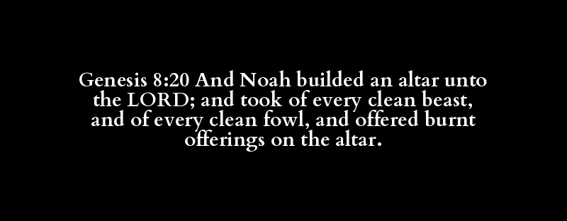 Genesis 8:20 And Noah builded an altar unto the LORD; and took of every clean beast, and of every clean fowl, and offered burnt offerings on the altar.