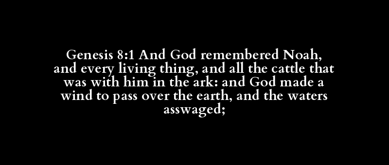 Genesis 8:1 And God remembered Noah, and every living thing, and all the cattle that was with him in the ark: and God made a wind to pass over the earth, and the waters asswaged;
